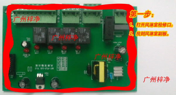 第一步:打開風(fēng)淋室檢修口,找到風(fēng)淋室控制器副板(注意:風(fēng)淋室控制器包括主板和副板)