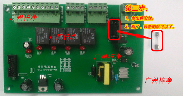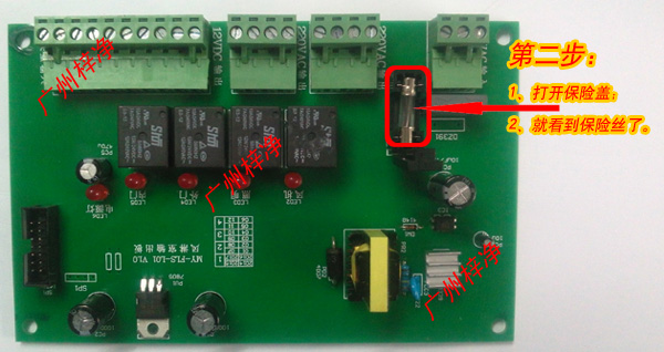 第二步:打開風(fēng)淋室控制器副板上的保險(xiǎn)盒,就看到保險(xiǎn)絲了。