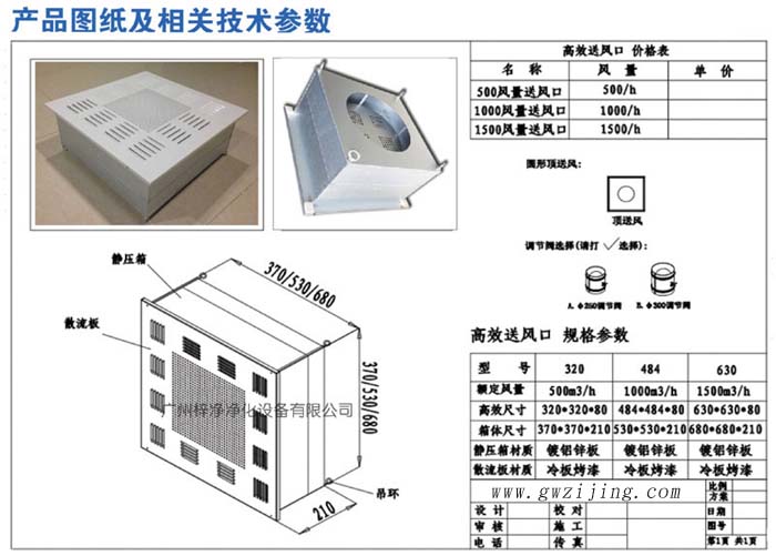 1、一套高效送風(fēng)口含法蘭、靜壓箱體、散流板、高效過(guò)濾器四件套,散流板采用冷軋鋼板烤漆制作,靜壓箱體采用鍍鋁鋅板制作,法蘭及調(diào)節(jié)閥采用鍍鋅板制作;