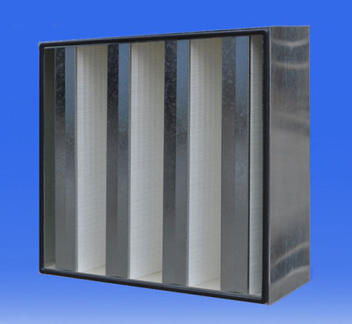 2、系列的大風(fēng)量高效過濾器的濾料選用的是進(jìn)口的超細(xì)玻璃纖維,濾料經(jīng)無隔板技術(shù)折疊成型後放在V型的框架內(nèi)。