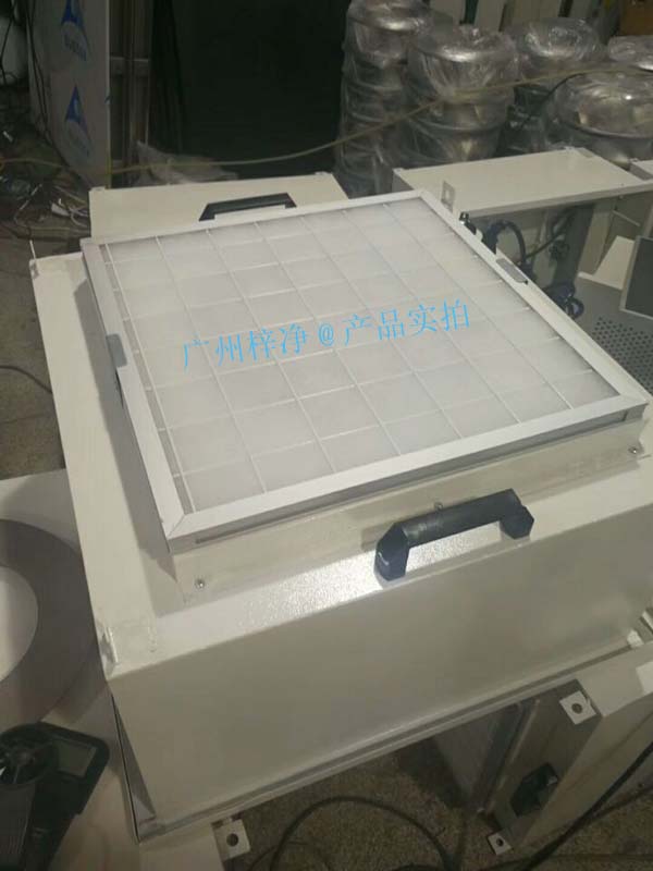 FFU層流罩設(shè)有初效過濾器、高效過濾器兩級過濾網(wǎng)。風(fēng)機(jī)從FFU頂部將空氣吸入并經(jīng)初、高效過濾器過濾,過濾后的潔凈空氣在整個(gè)出風(fēng)面以0.45M/S±20%的風(fēng)速勻速送出。