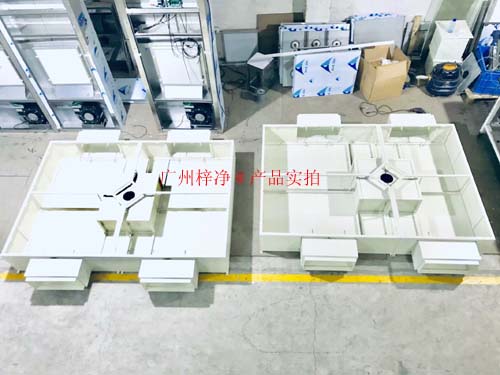 百級送風(fēng)天花即滿布高效過濾器的送風(fēng)頂棚,有多種形式,本設(shè)計采用液槽密封形式的送風(fēng)天花。