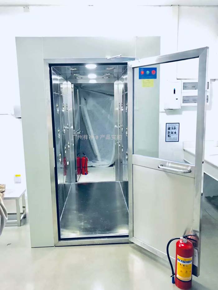 1、光電感應(yīng)控制,實(shí)行自動吹淋??捎行Ц綦x人員及物品表面塵埃帶入潔凈室。