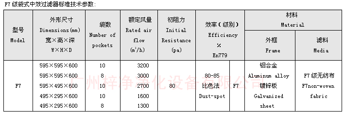 袋式中效過濾器標準尺寸技術參數文章出處: