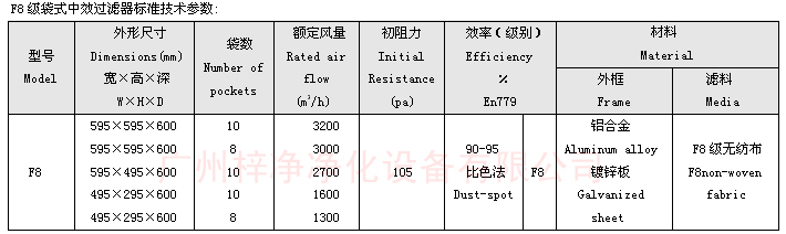 F5級袋式中效過濾器?????F6級袋式中效過濾器????F7級袋式中效過濾器????F8級袋式中效過濾器