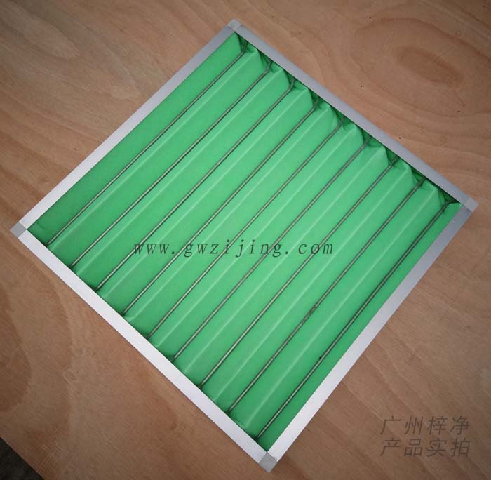 3、折疊式形狀,此外框前后以對角線固定濾材,濾材與外框緊密的粘合防止任何氣漏產(chǎn)生,其過濾面積是一般平面的2—5倍。