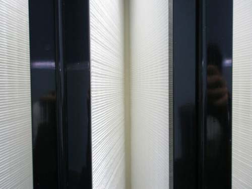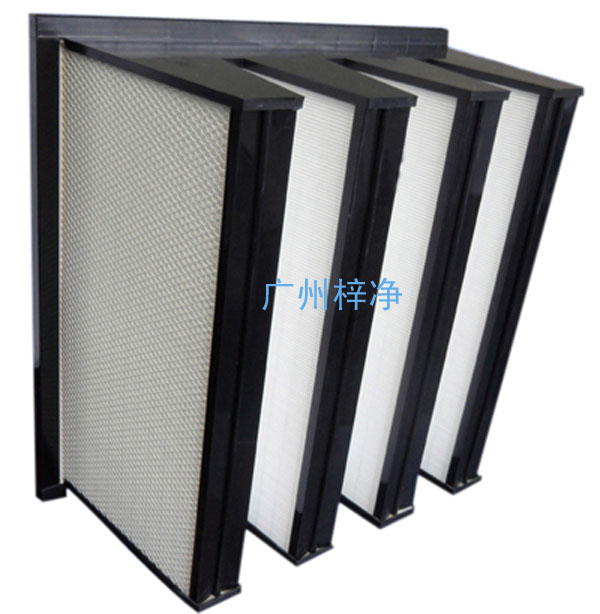 此處過濾器的效率規(guī)格一般為全部都是有隔板結(jié)構(gòu),褶距約8mm的玻璃纖維濾紙由瓦楞狀的鋁箔隔開。由于要耐高溫,濾紙與過濾器金屬外框間的粘合與密封問題是關(guān)鍵,密封結(jié)構(gòu)要可靠,密封材料的成本又不能太高。